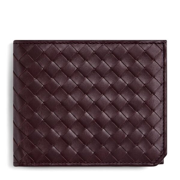 Color: Dark barolo Bi-fold wallet in Intrecciato piccolo calf leather. • Intrecciato piccolo calfskin leather wallet • Eight card slots,
