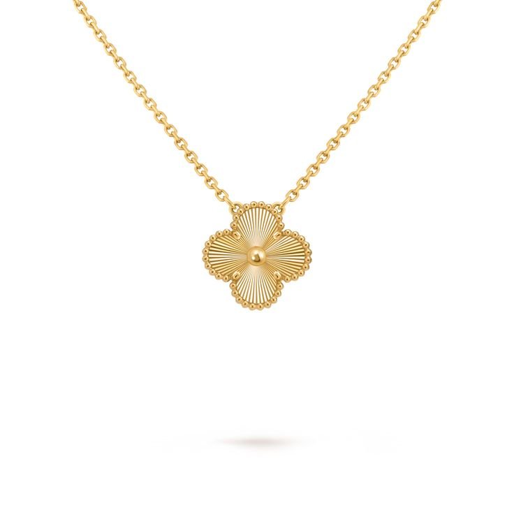 Vintage Alhambra pendant, guilloché 18K yellow gold.The pendant is attached to the necklace’s chain